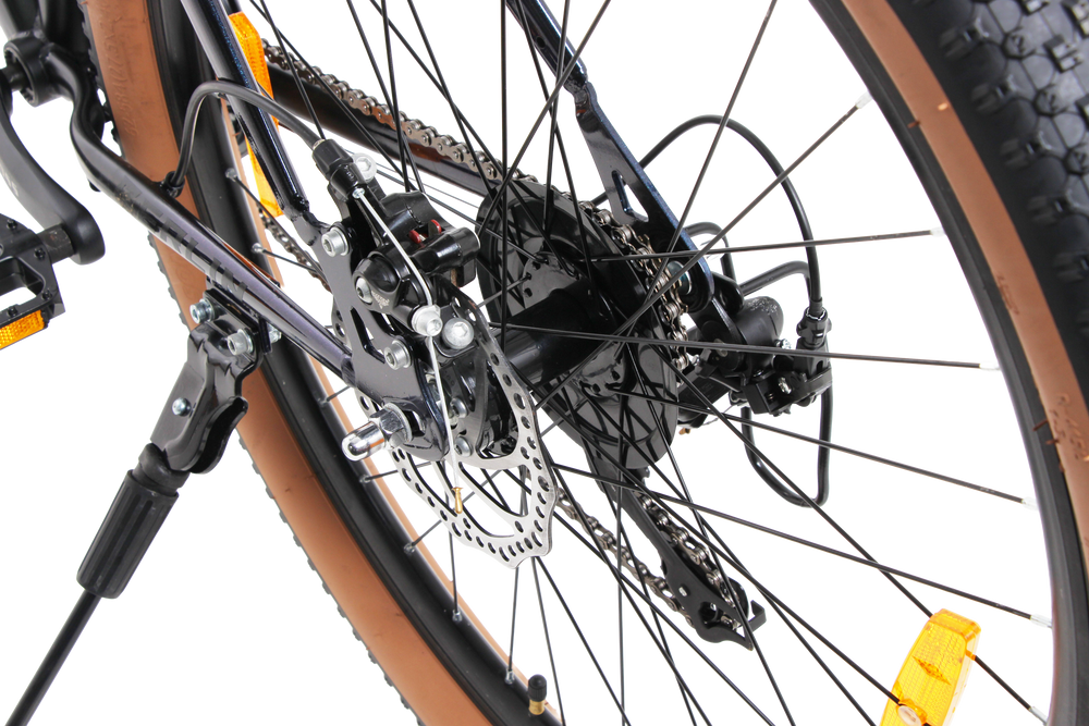 Equipped with mechanical dual disc brakes, 27.5″ × 2.4 wide tyres, and durable alloy double-wall rims, the Berlin offers superior stability and braking. Comfort is enhanced with a soft saddle featuring quick-release and anti-skid alloy pedals. The Limited Edition pack also includes a heavy-duty side stand and full reflector kit for safety.