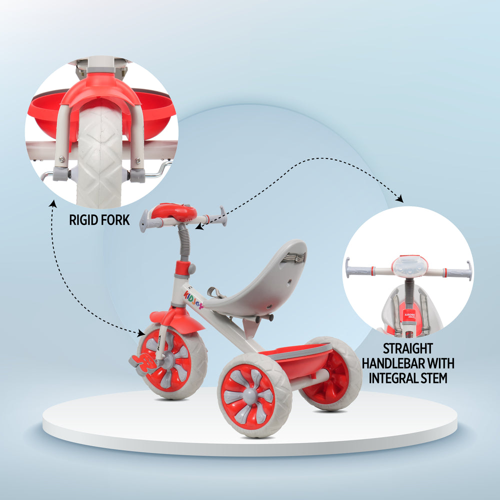 The Kidjoy TX-1 Kids Tricycle is specially designed for toddlers to enjoy safe, fun, and comfortable rides. Built with a sturdy MIG welded steel frame and rigid front fork, this tricycle ensures durability and stability for everyday outdoor play. The straight handlebar with V-clip stem offers secure steering, while the foam-cushioned plastic seat provides maximum comfort.