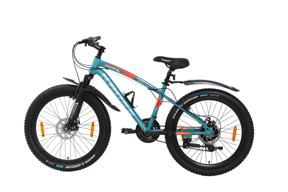 Equipped with a 21-speed Shimano drivetrain, wide 24x2.40” all-terrain tyres, and a comfortable sport saddle, the Maximus Pro delivers stability, grip, and speed in every ride. Finished in a premium Metallic Blue, the bike carries an aggressive look combined with modern geometry for improved comfort and riding efficiency.