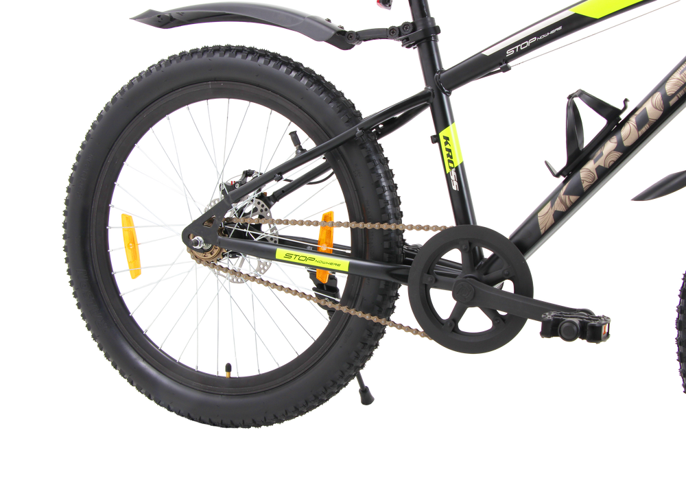 The Kross Maximus Pro 24T is a strong, stylish and performance-focused kids’ MTB designed for everyday riding, adventure trails and city use. Built on a high-tensile ergonomic steel frame, it features a front suspension fork for better shock absorption and dual disc brakes for powerful, reliable stopping in all conditions.