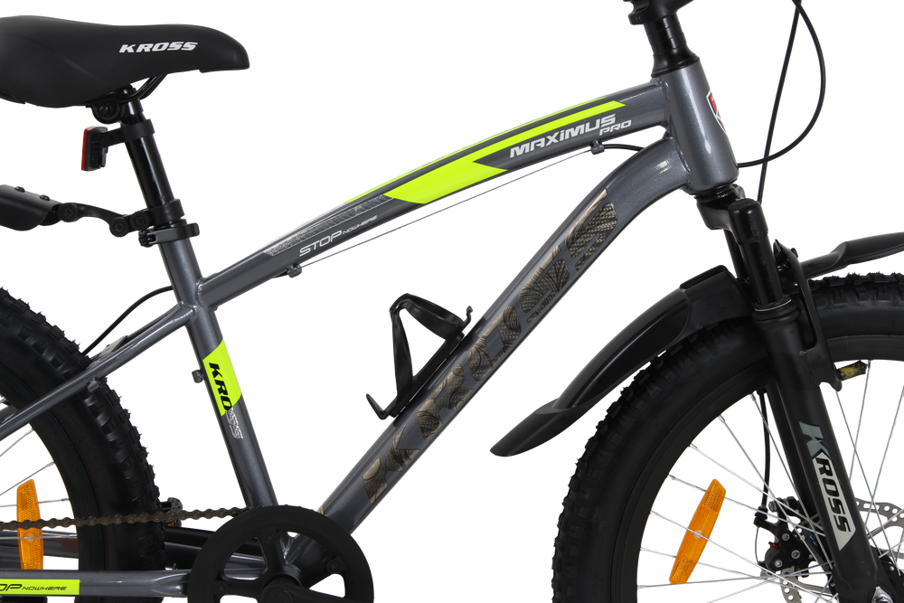 The Kross Maximus Pro 24T is a strong, stylish and performance-focused kids’ MTB designed for everyday riding, adventure trails and city use. Built on a high-tensile ergonomic steel frame, it features a front suspension fork for better shock absorption and dual disc brakes for powerful, reliable stopping in all conditions.