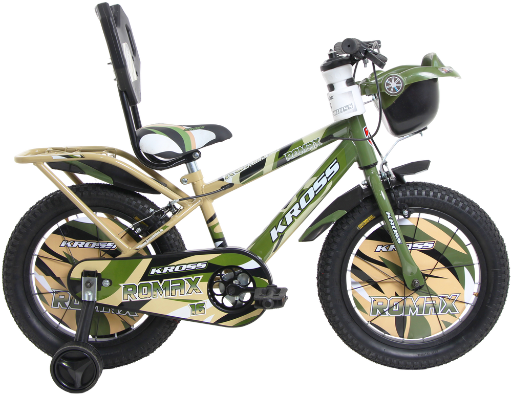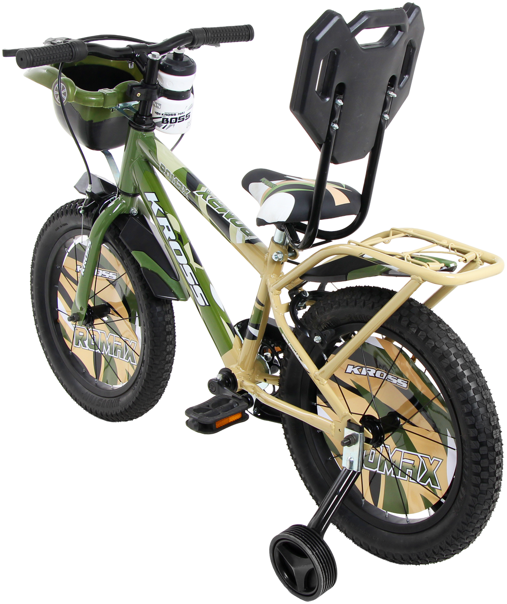 Accessories Dual-color mudguards (F & R), water bottle with holder, wheel cards, backrest, side supporters (training wheels), dual-color basket, full chain cover