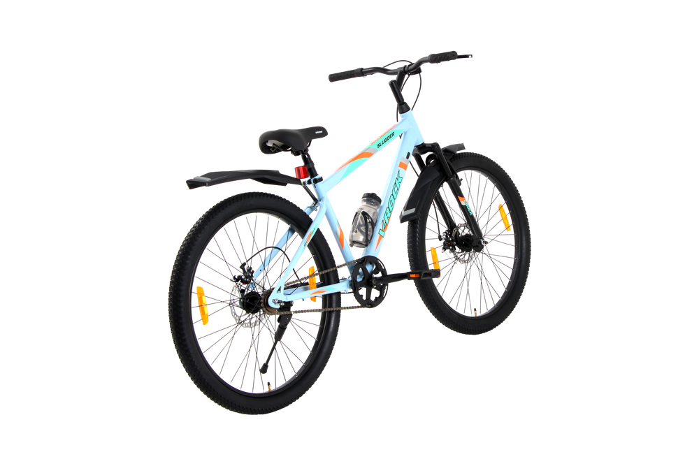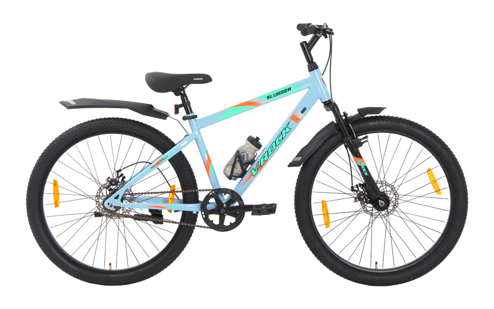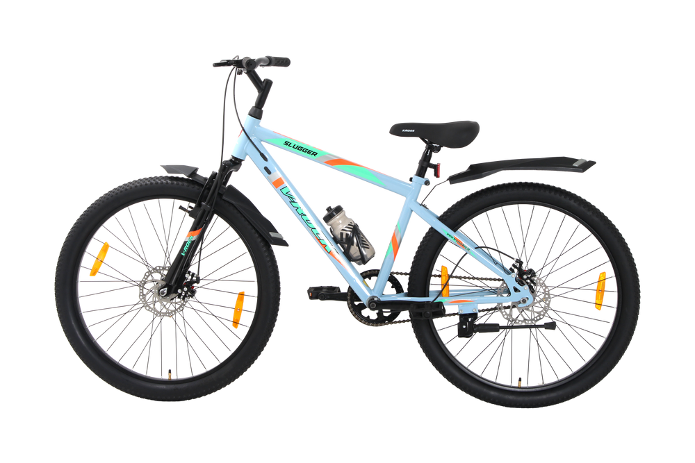 The Kross Slugger V-Rock 26T Blue is a stylish and performance-ready urban MTB engineered for comfort, stability and strength. Its ergonomically designed 26T IBC steel frame, paired with a front suspension fork, makes it ideal for city roads, mild trails and everyday commutes.