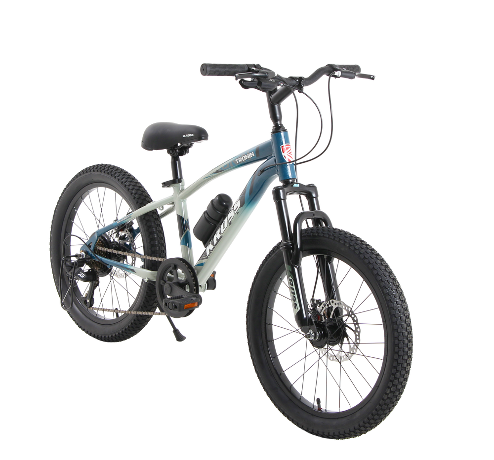 The Kross Tronin 20T is a premium 7-speed kids MTB engineered for young riders who demand style, speed, and stability. Equipped with a smooth L-TWOO 7-speed drivetrain, powerful dual disc brakes, and robust 20×2.40 all-terrain tyres, this bike delivers excellent control across city streets, parks, and off-road tracks.