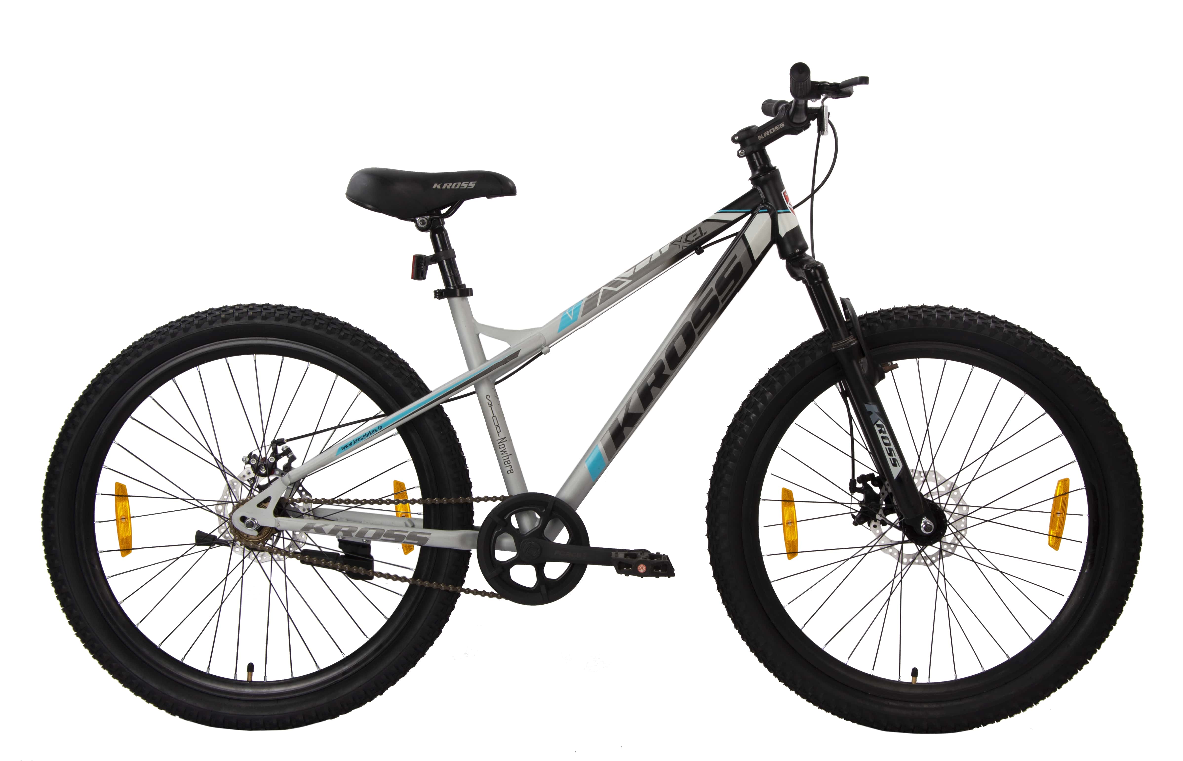 The XCEL 26T Single Speed Mountain Bike is designed for riders who want both comfort and control on every ride. Built with an ergonomically designed TIG-welded steel frame and front suspension fork, this MTB ensures stability on both city roads and off-road trails. The oversized MTB handlebar with alloy stem provides better handling, while the front and rear disc brakes deliver reliable stopping power. Equipped with 26-inch alloy double-wall rims and wide 2.35 tires, the bike offers excellent grip and durability. With a comfortable quick-release saddle and anti-skid pedals, the XCEL 26T guarantees a safe and enjoyable riding experience for everyday use and adventure rides.