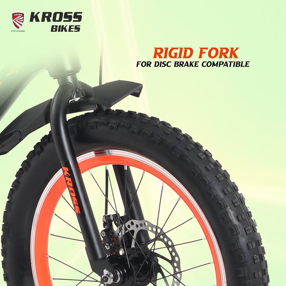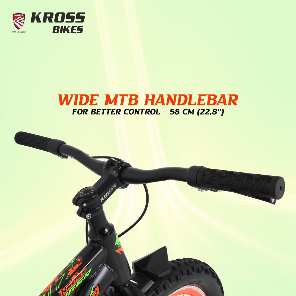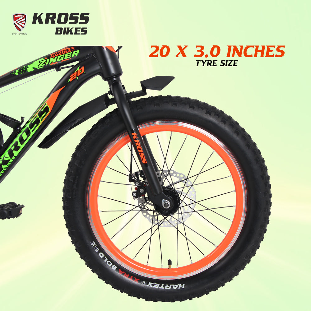 The Kross Zinger 20T SS DD is a robust and stylish kids’ MTB-style bicycle designed for ages 6–10 years. Built with an ergonomically designed steel frame and rigid fork, it offers a stable and safe riding experience. Featuring front and rear disc brakes, oversized MTB handlebar with soft grips, and wide 20x3.0” alloy double-wall rims, it ensures excellent control and comfort. Comes equipped with a comfortable QR saddle, anti-skid resin pedals, flying mudguards, side stand, and bottle cage, making it perfect for fun rides and daily adventures.