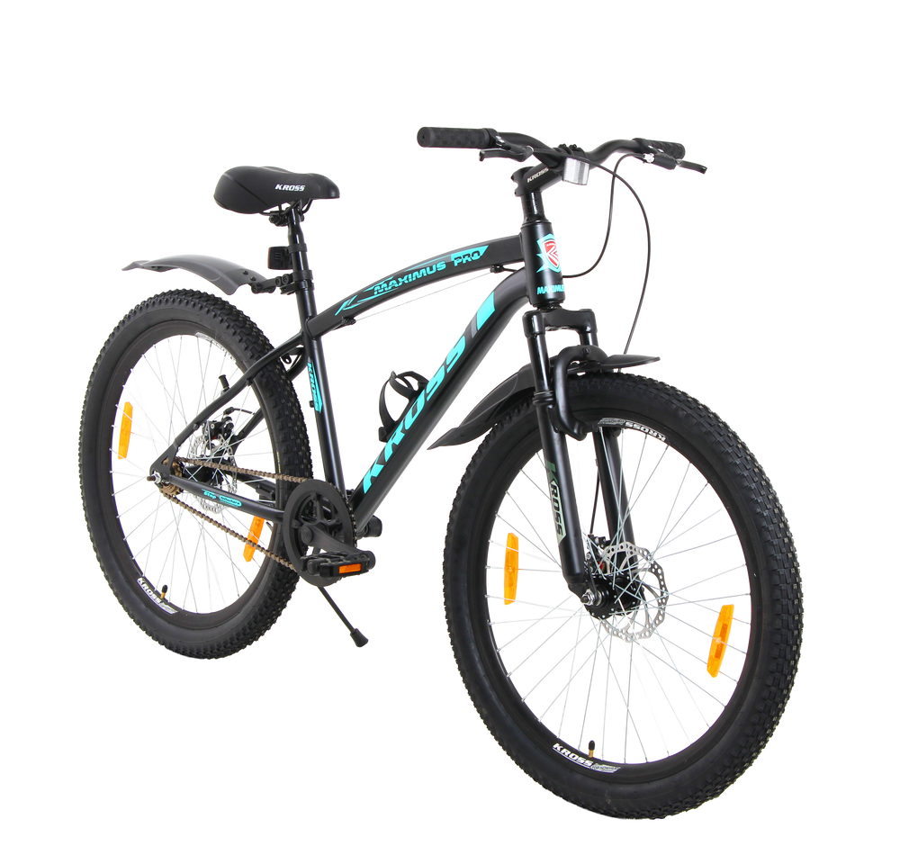 The Kross Maximus Pro 26T is a rugged and stylish MTB engineered for urban roads, rough trails and daily rides. Built using a strong TIG-welded IBC steel frame, this cycle combines durability with precise handling. The suspension fork absorbs shocks on uneven surfaces, while dual disc brakes deliver confident stopping power in all weather conditions.