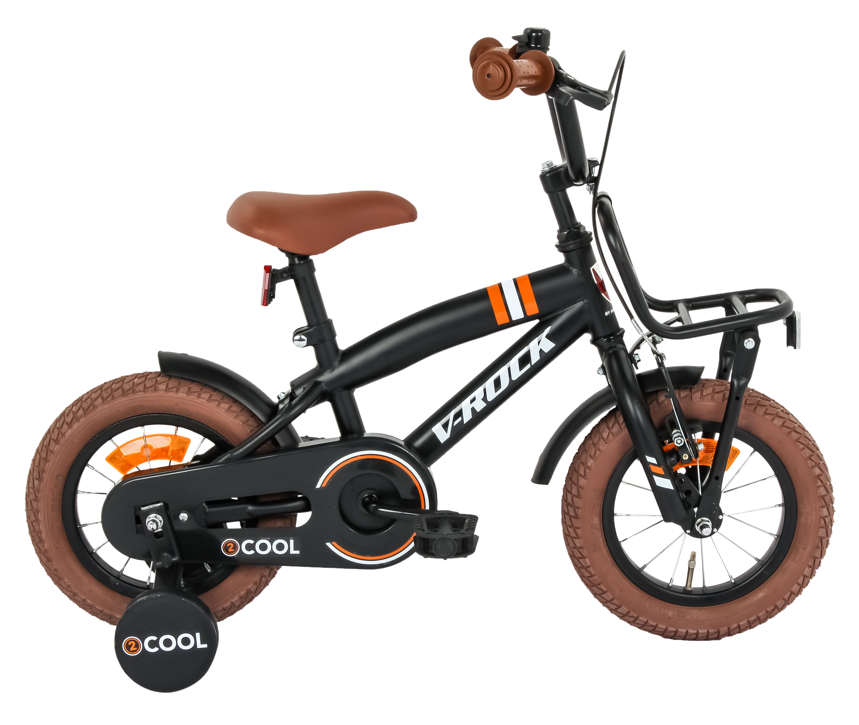 The VROCK 2 Cool 12T Kids Bicycle is designed for little riders who love adventure and comfort. Built with a sturdy steel frame and durable rubber tyres, it ensures a smooth and safe riding experience. The bike features front V-brakes and a rear coaster brake for effective stopping power. Equipped with heavy-duty training wheels, a full chain guard, and ISO-certified reflectors, this cycle offers both safety and style. The adjustable seat and soft cushioned saddle provide comfort as your child grows. Perfect for kids aged 4 to 7 years, the VROCK 2 Cool is a reliable first ride for every young explorer.