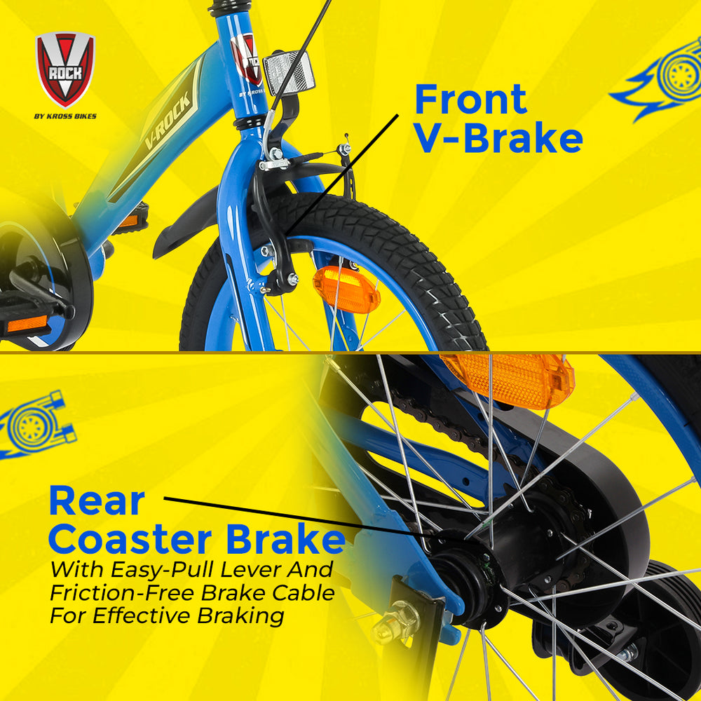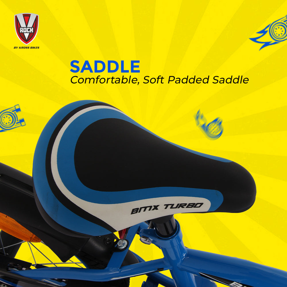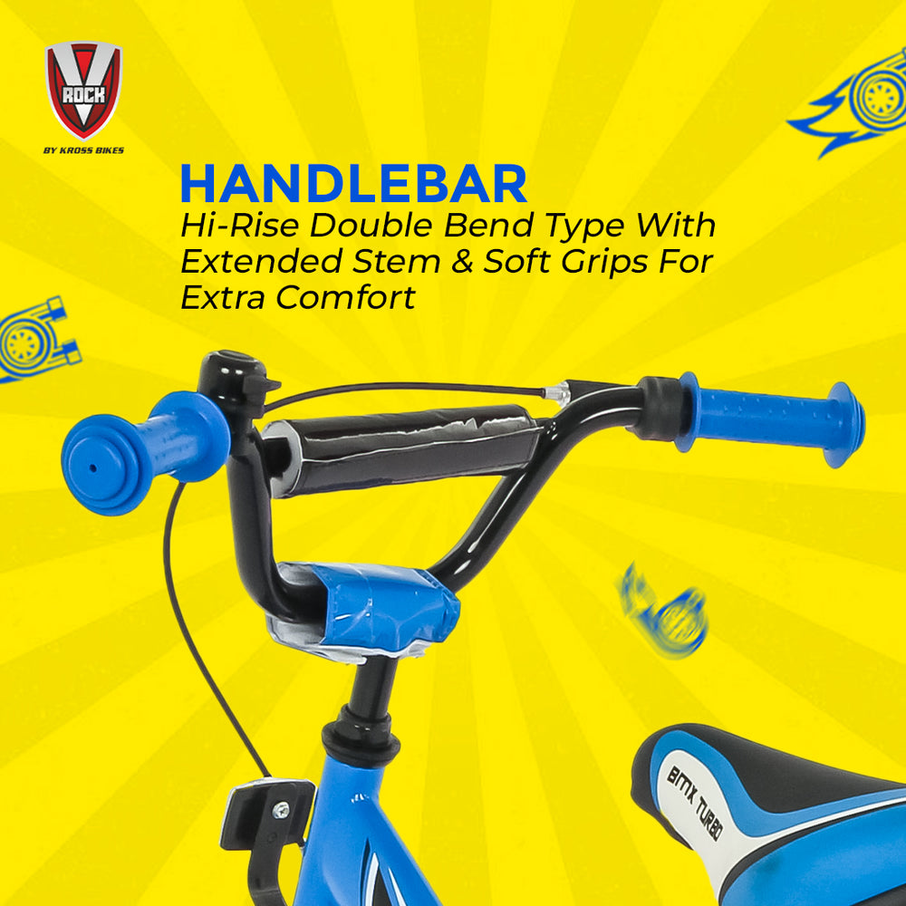 The V Rock BMX Turbo 16T is a fun, safe, and durable bicycle designed especially for young riders. Built on a strong steel BMX frame in an eye-catching Turbo Blue color, it ensures long-lasting performance and stability for kids learning to ride.