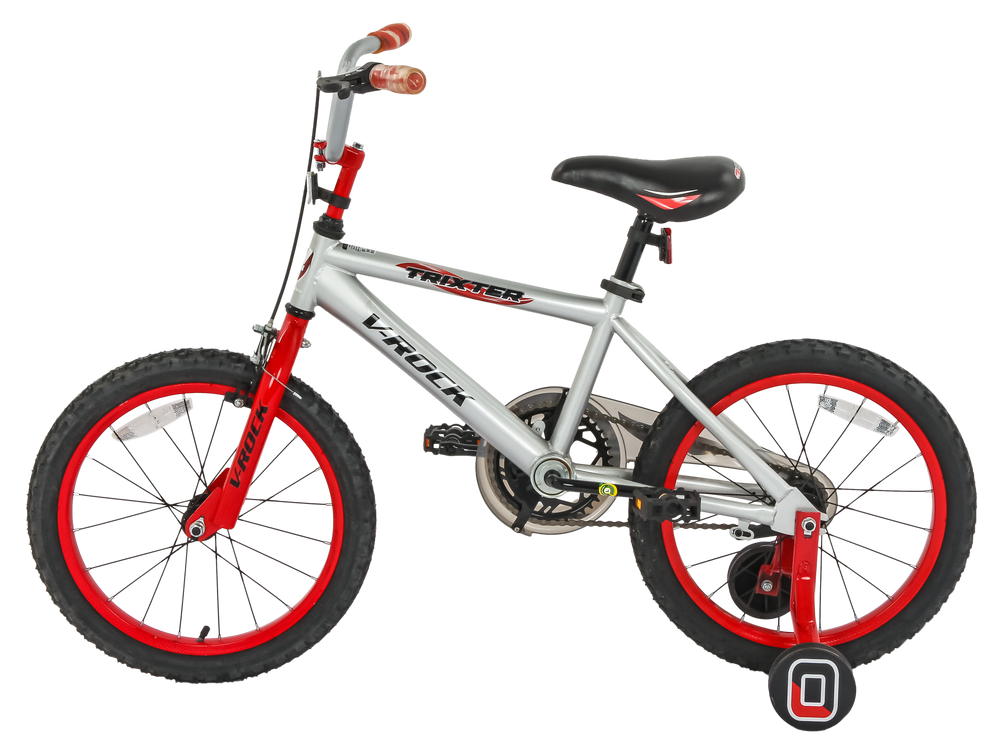 The V-Rock Trixter 18T Silver-Red Kids Bike is built for young riders who love a bold and adventurous ride. Designed with a strong steel frame and a rigid fork, it offers excellent stability and control for kids aged 5 to 8 years. The combination of a front wire brake and rear coaster hub brake ensures reliable and easy braking, making it safe for beginners. Its 18-inch tyres and metal mudguards provide smooth performance and protection from splashes during outdoor play. The PU saddle offers a comfortable seating experience, while the vibrant silver-red finish adds a sporty touch. Perfect for both boys and girls, the Trixter 18T blends safety, comfort, and style—ideal for fun rides in the park or around the neighborhood.