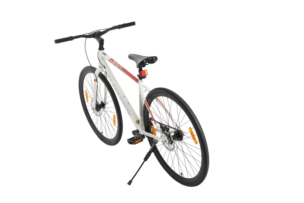 The 28" alloy wheels are paired with puncture-resistant 700x35C nylon tires for enhanced grip and durability. The ergonomic handlebar, adjustable alloy stem, and cushioned saddle provide superior control and comfort. Additional features such as a quick-release seat clamp, alloy pedals, heavy-duty side stand, and reflective safety elements make this bicycle practical, safe, and stylish.