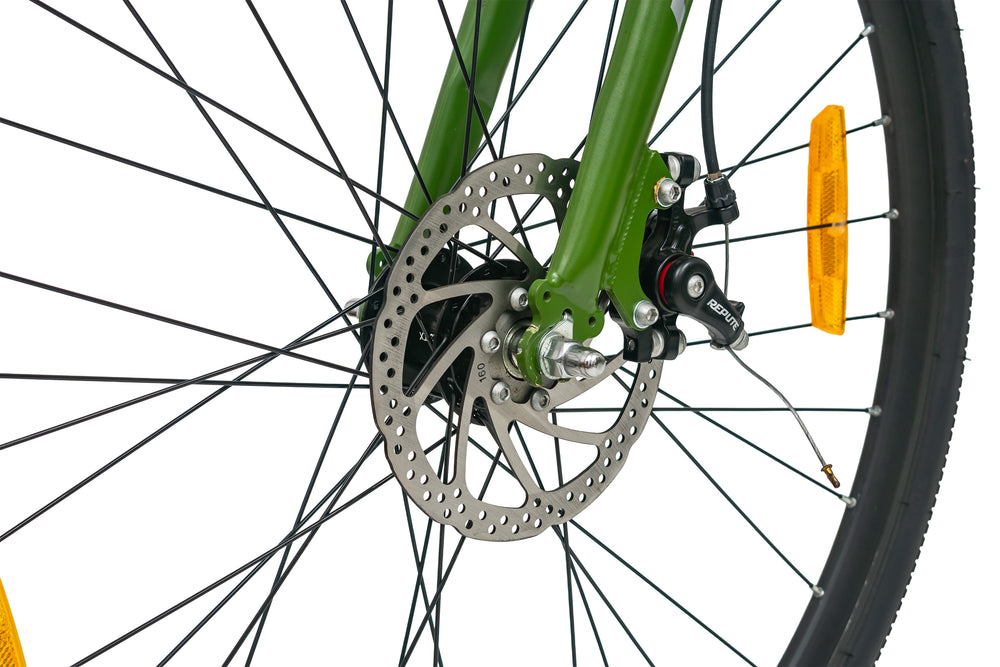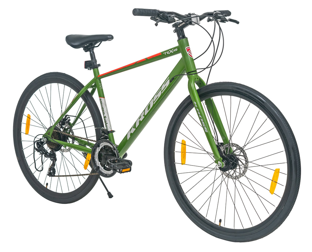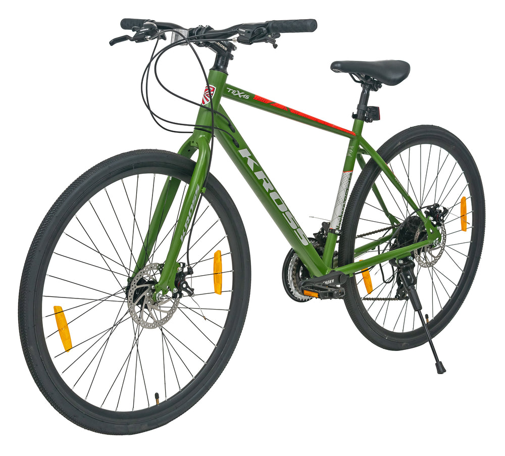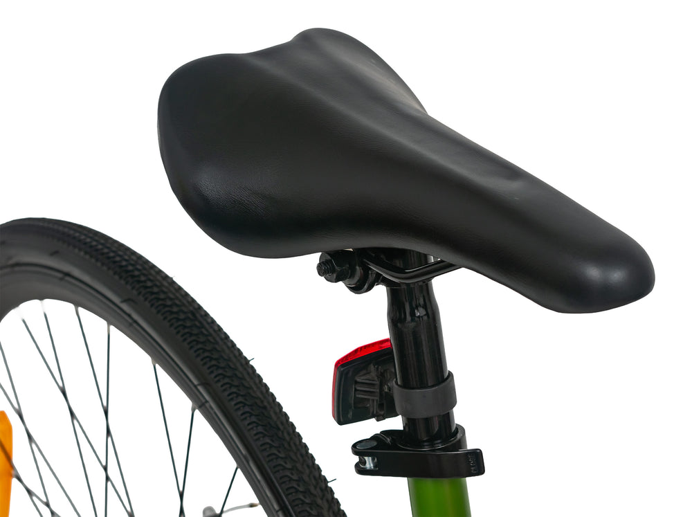 Ride with confidence and style on the Texas 28T 700C Green Multispeed Bicycle, designed for both performance and comfort. Built with a durable steel frame and equipped with dual disc brakes, this bike ensures superior control and reliable stopping power on all terrains. The 700C double wall alloy rims provide strength and stability while maintaining a lightweight feel for smoother rides. Its multispeed drivetrain allows effortless gear shifting, making it perfect for city commutes, fitness rides, or weekend adventures. Ideal for riders aged 12 years and above, the Texas 28T combines sporty aesthetics with robust engineering — a perfect blend of strength, speed, and comfort for your everyday journey.