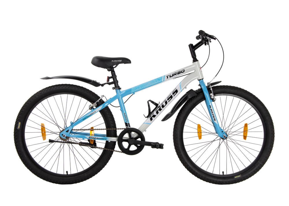 The TURBO 26T Single Speed MTB is built for riders who want a strong, simple, and reliable bicycle for daily commuting and fitness rides. Designed with a sturdy 38 cm steel MTB frame and a rigid fork, it delivers stable handling and efficient power transfer. The front and rear V-brakes ensure dependable stopping performance, while the 26 × 2.40 tyres mounted on double-wall alloy rims provide durability and road grip.