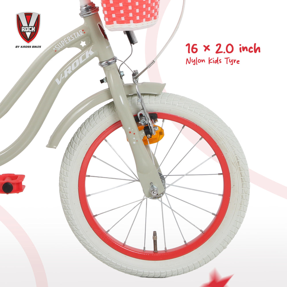 The V-Rock Superstar 16T Kids Bicycle is thoughtfully designed to provide young riders with a safe, stable, and fun cycling experience. Built using a strong steel frame, this bike ensures durability and reliability for everyday use. Its low standover height and child-friendly geometry allow easy mounting and better control, making it ideal for beginners.