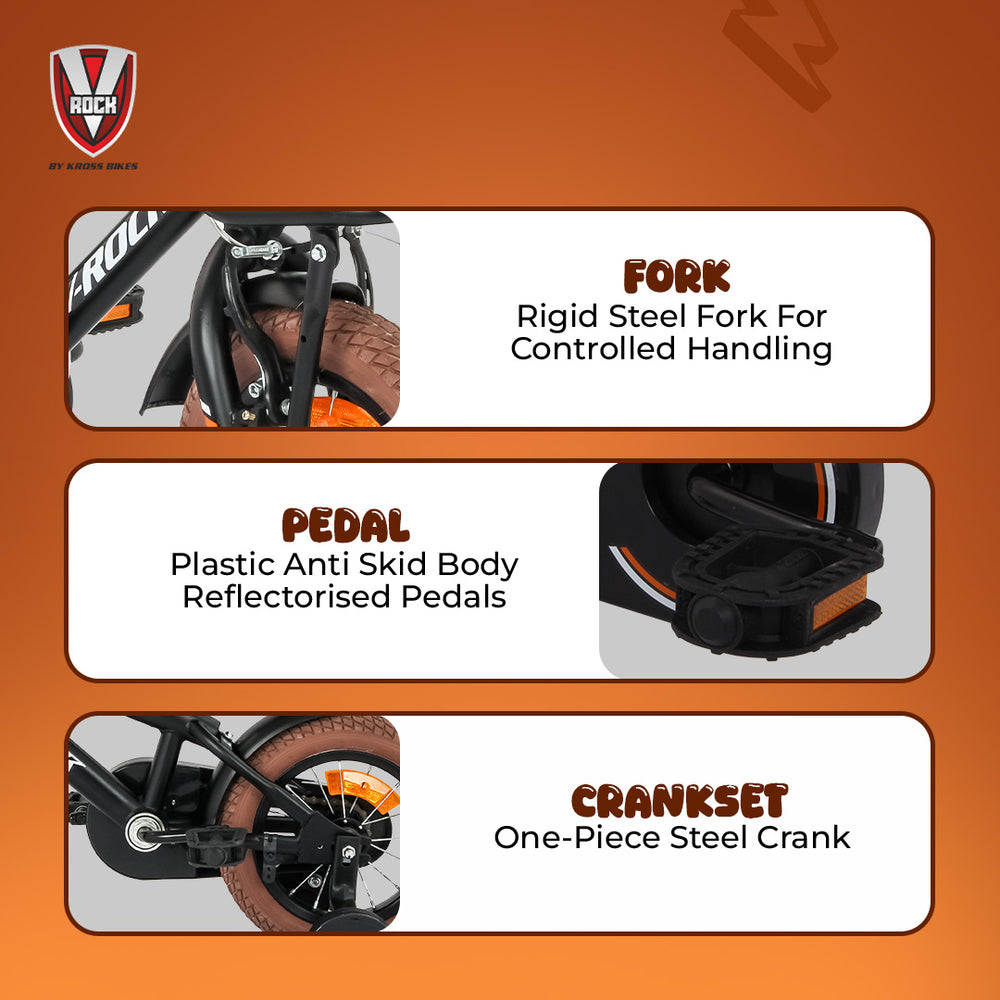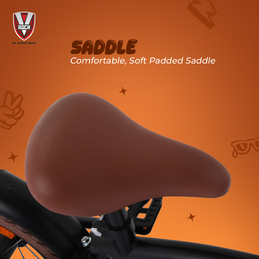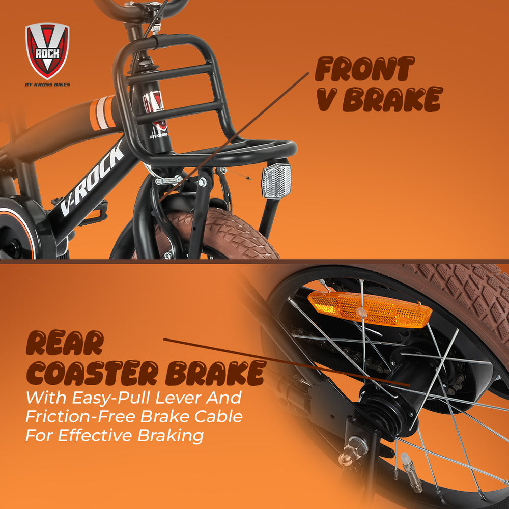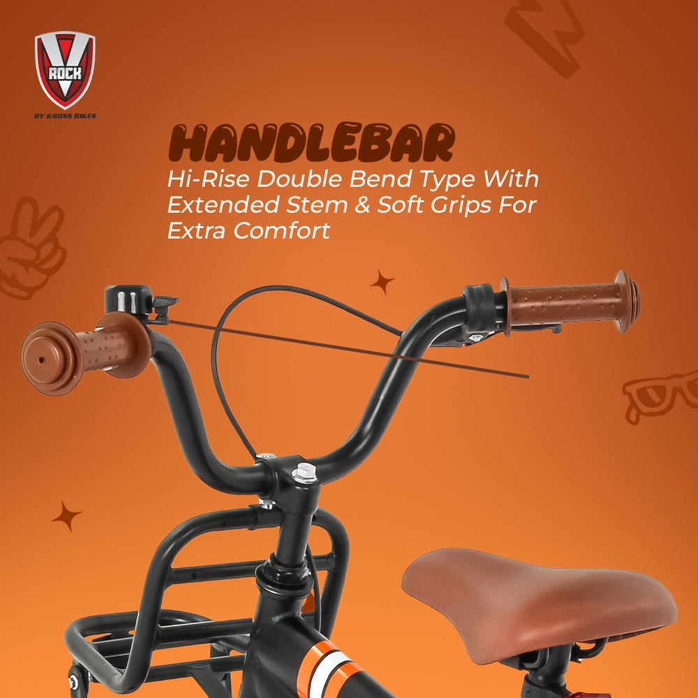 Its ergonomic handlebar and adjustable seat pillar allow proper riding posture while growing kids continue to enjoy comfortable rides. The stylish Matt Black finish with V-Rock graphics gives the bicycle a sporty and attractive appearance.