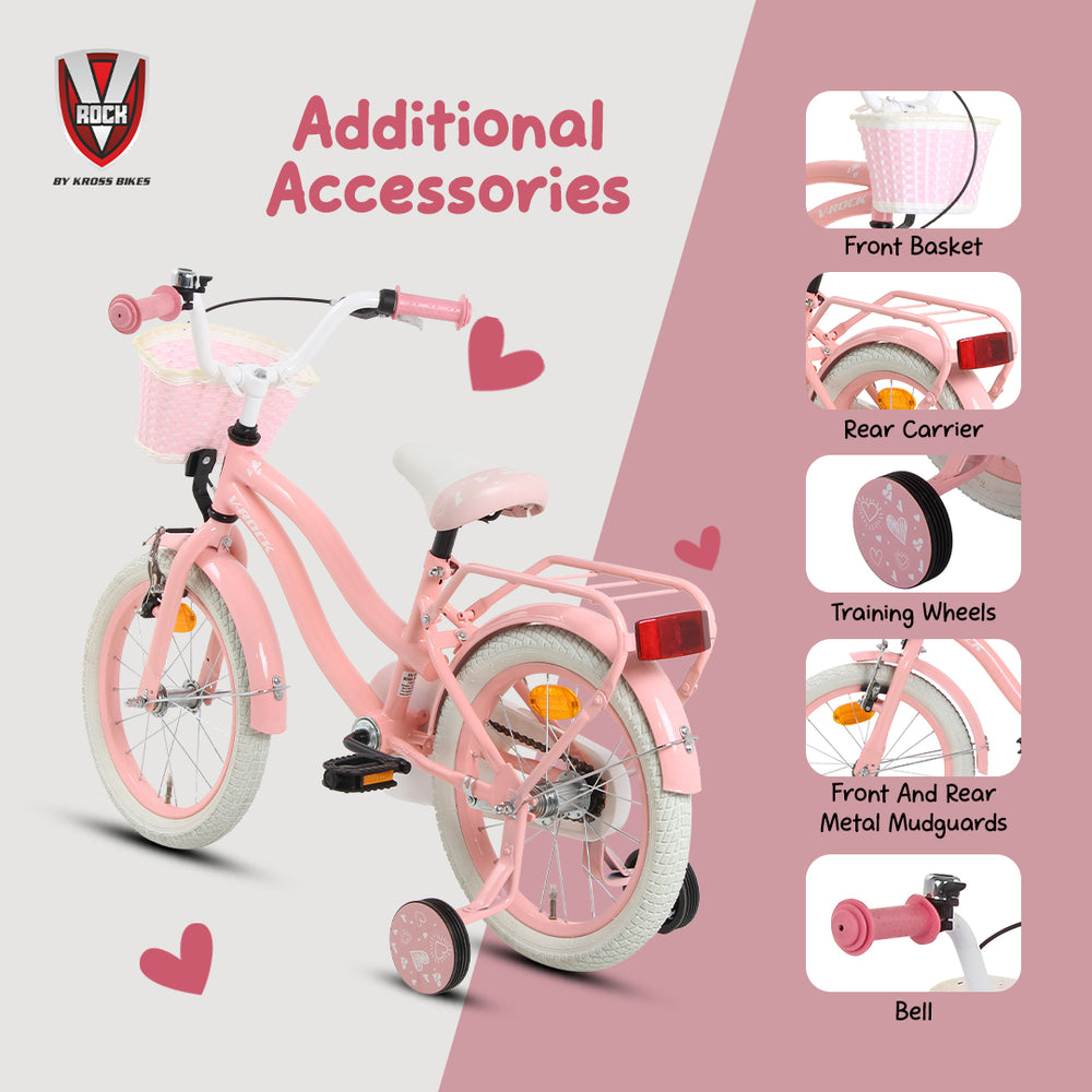 Perfect for everyday riding, park outings, and learning balance, the Kross V Rock 16T Lovely Pink Kids Bicycle combines safety, durability, and fun in one stylish package.
