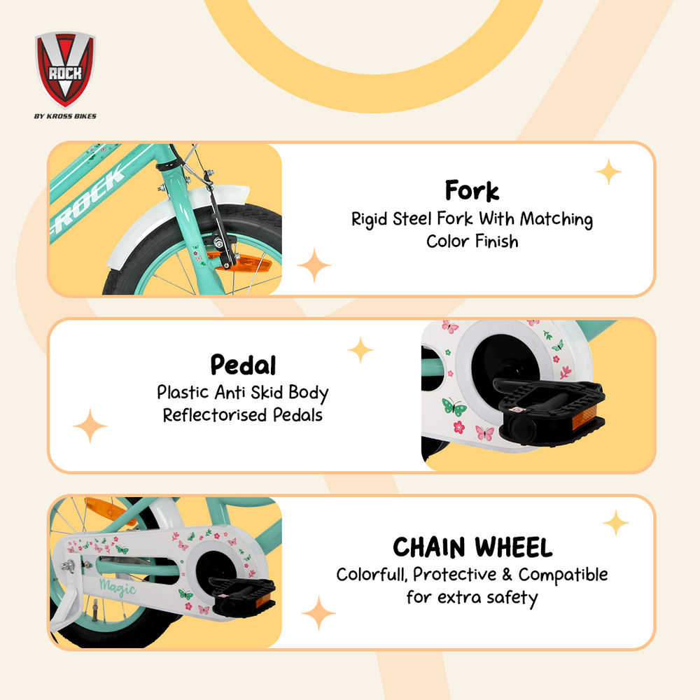 Let your child enjoy their first riding adventure with the V-ROCK Amigo Magic 14T Bicycle, specially designed for comfort, safety, and confidence-building. Built on a strong TIG welded steel frame, this bicycle offers durability with a stylish white and pink finish that kids love.